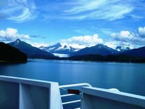 We start our first Inside Passage trip from Skagway to Juneau with beautiful sunshine. We pass glaciers within gorgeous mountain scenery and we saw a few whale tails.