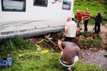 But before we reach the spot we have to cross a small river and one of our campers got stuck, but with joined forces we could free him - thanks to good team work.