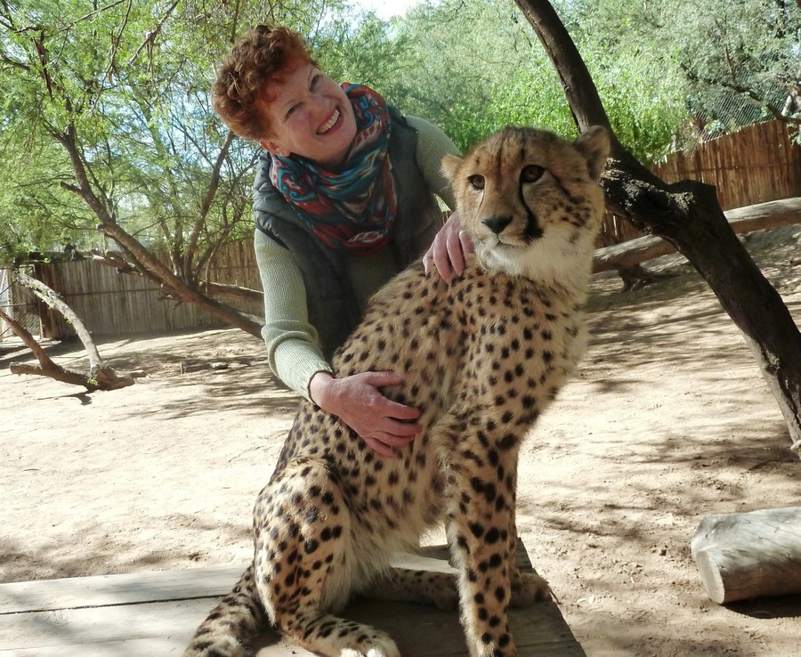 In der Nähe von Oudtshoorn besuchen Sepp und ich die Cango Wildlife Ranch. Im Tierpark sehen wir Krokodile, Löwen, Tiger und zahlreiche Großkatzen. Besonders stolz ist man hier auf die Aufzucht von Geparden (Cheetas). Bevor ich nein sagen kann, hat mich Sepp schon angemeldet: ich darf einen Geparden streicheln, der Menschen - sagt man mir - mag. Ein ganz besonderes Erlebnis!