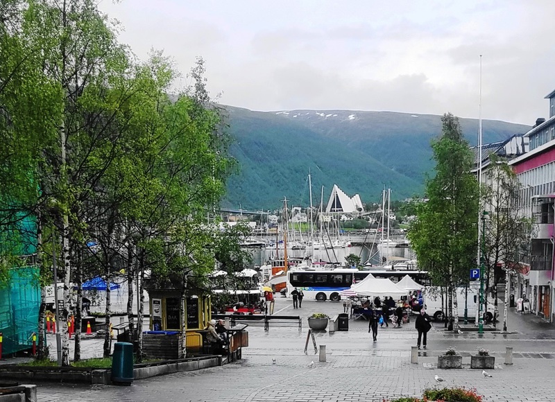 Wieder führt unsere Fahrstrecke an mehreren Fjorden entlang und wir genießen den Blick auf die alpine Landschaft der Lyngenalpen. Mit einem Zwischenstopp in Storslett erreichen wir das „Paris des Nordens“ Tromsø, die mit 76.000 Einwohnern größte Stadt Nordnorwegens, 344 Kilometer nördlich des Polarkreises gelegen.